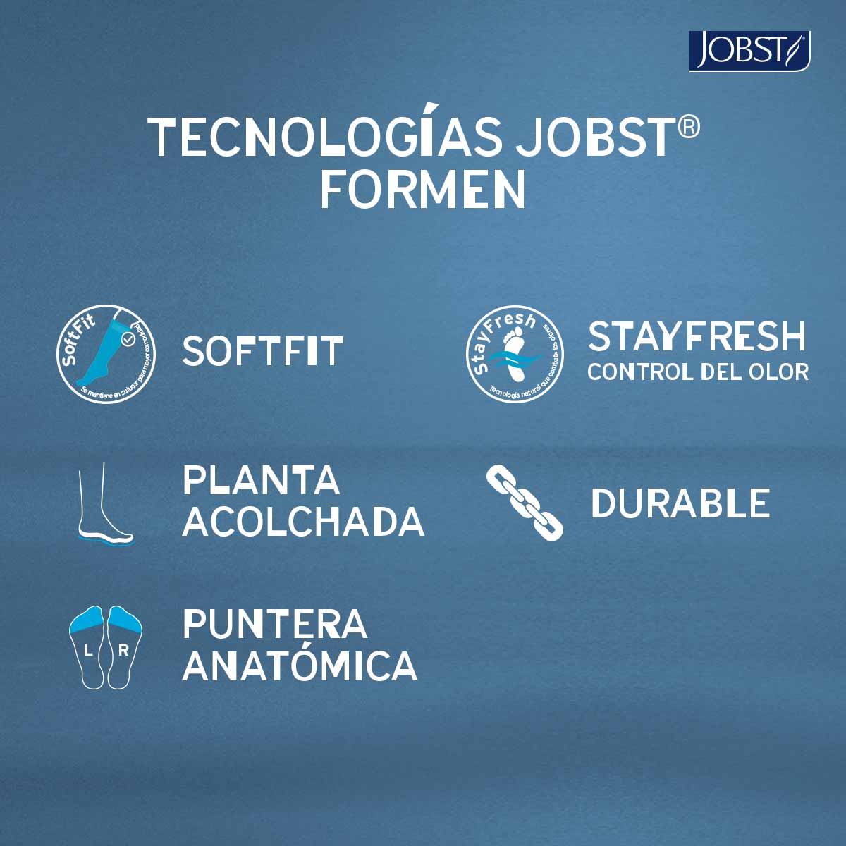 JOBST FORMEN fue diseñada para hombres que desean un estilo elegante y discreto durante el tratamiento de la insuficiencia venosa crónica.