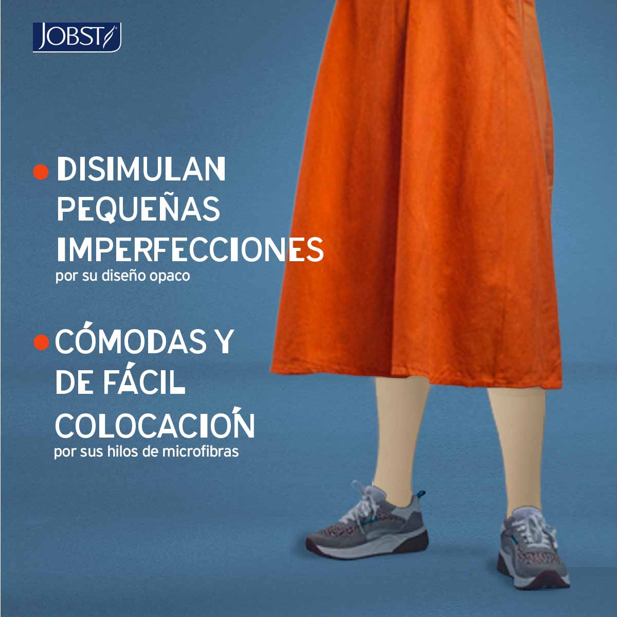 Las medias de compresión JOBST Opaque son ideales para combinar con vestimentas casuales y semiformales gracias a su tejido de textura suave, adaptable a la anatomía y la forma de un amplio rango de piernas. Son medias de compresión médica al muslo, fabricadas con una mezcla de hilos de microfibra/multifibra de nylon que otorgan un aspecto elegante y opaco, que disimula las imperfecciones de la piel, como várices y arañitas vasculares, brindando un alivio y bienestar a las piernas con problemas de circulación sanguínea.