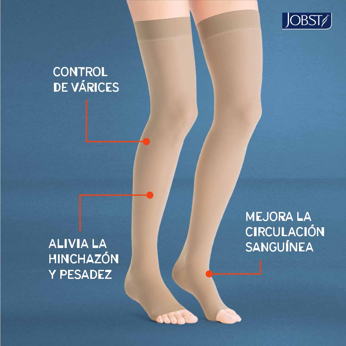 Las medias de compresión JOBST Ultrasheer están diseñados para la prevención y tratamiento del paciente con insuficiencia venosa crónica, desde piernas cansadas o pesadas, presencia de arañitas vasculares, venas varicosas, edemas, cambios de coloración de la piel, hasta úlceras venosas cicatrizadas (desde etapa C0 A C5), prevención de recurrencia de ulcera venosa, generando un gradiente de compresión que favorece el retorno venoso y la microcirculación. Su diseño elegante, cómodo y altamente transparente hará que solo tú sepas que llevas una media con beneficios médicos.