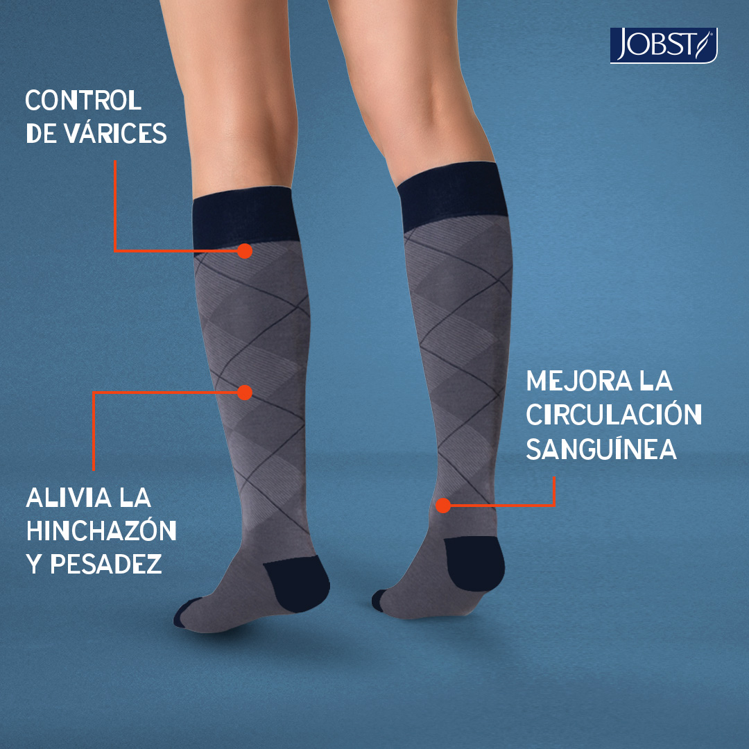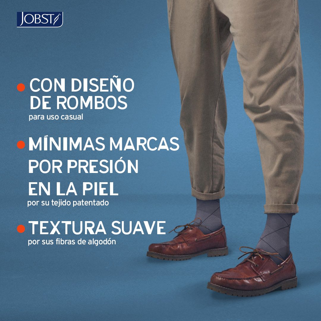 Las medias de compresión JOBST Style son el equilibrio perfecto entre estilo y funcionalidad terapéutica. Diseñadas para la prevención y tratamiento de la enfermedad venosa crónica, son calcetines cómodos, casuales y de uso diario. Tiene un tejido de textura suave, fabricado con una mezcla de algodón natural, haciéndolos más ligeros y cómodos al tacto. Fabricado con un diseño de patrón de rombos único con construcción de punto innovadora: sin puntadas sueltas en el interior, lo que genera marcas de presión mínimas. Promueve el retorno venoso y mejoran la circulación, aliviando el dolor, ardor, calambres y edema.